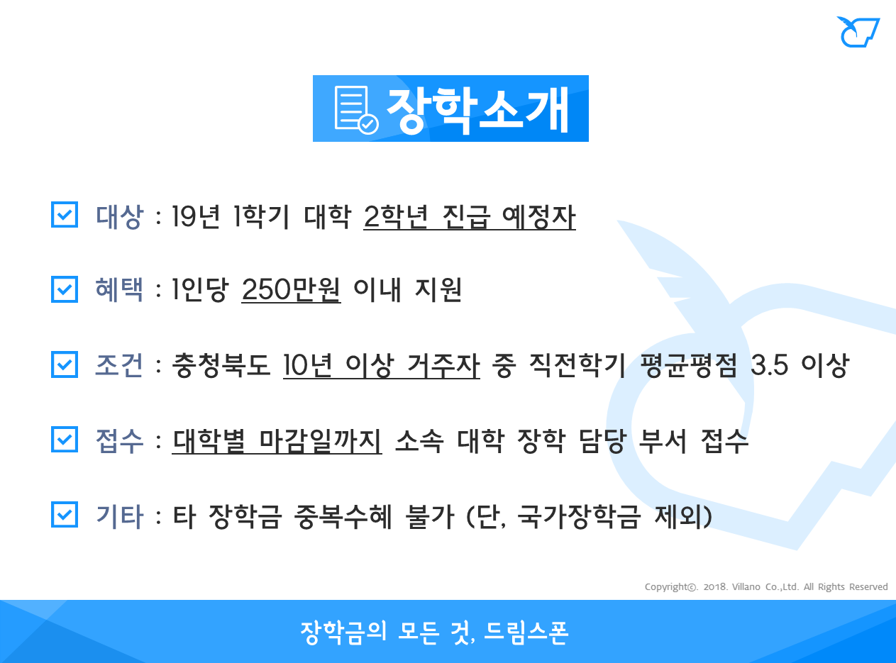 - 장학금액 : 250만원 이내 지원