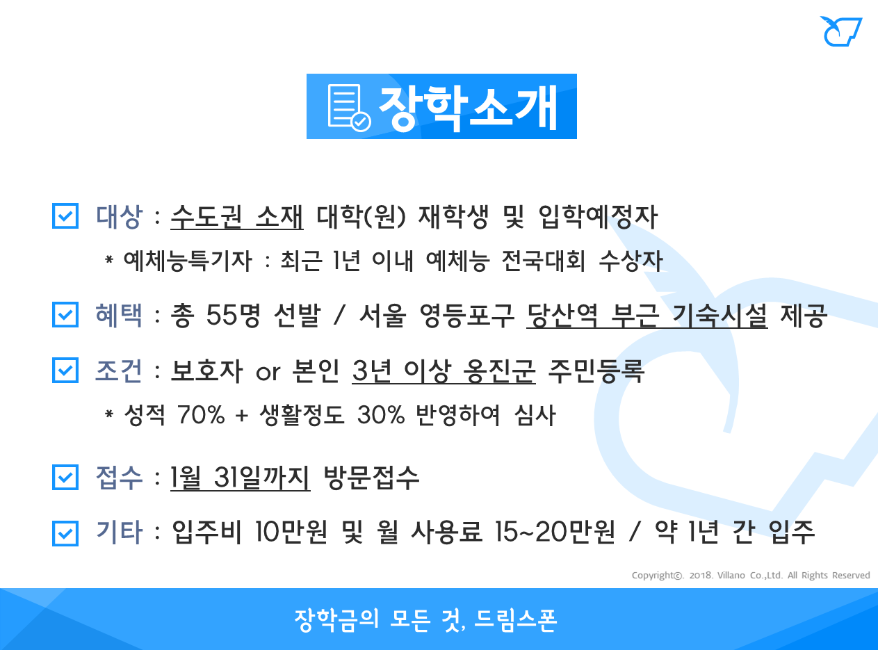 옹진장학관 입사생 모집 (2019년)