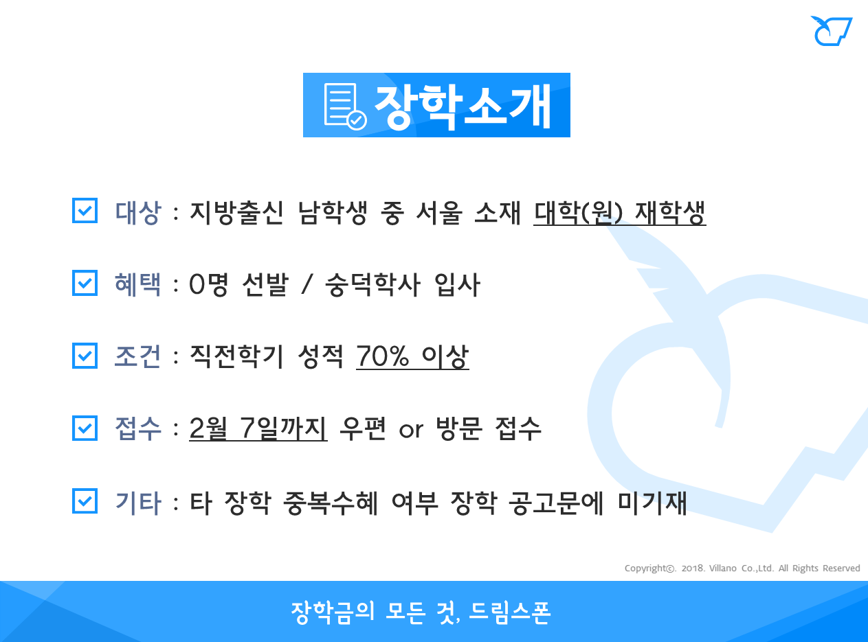 - 장학혜택 : 숭덕학사 입사