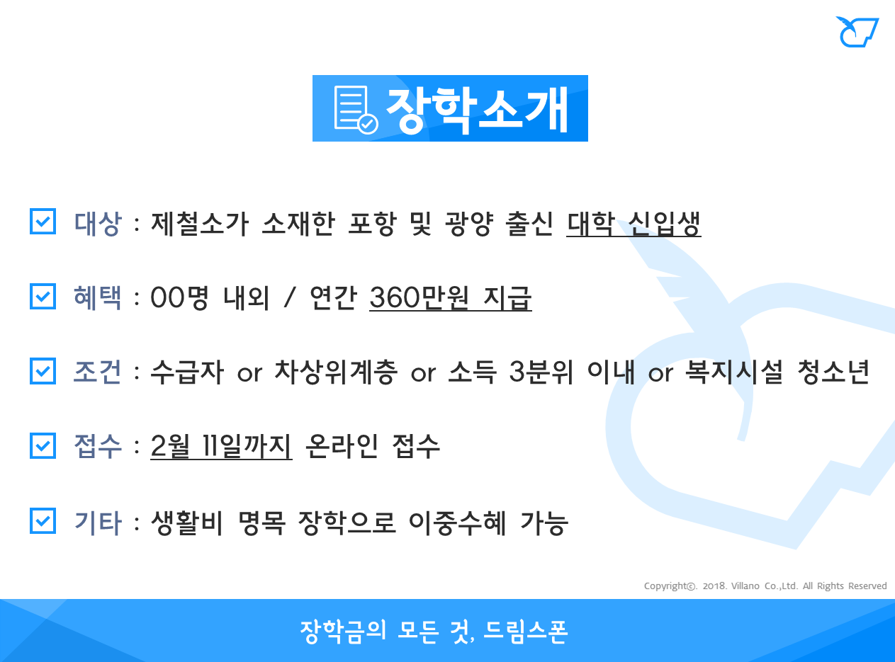 - 장학금액 : 연간 360만원 지급 (매월 30만원)