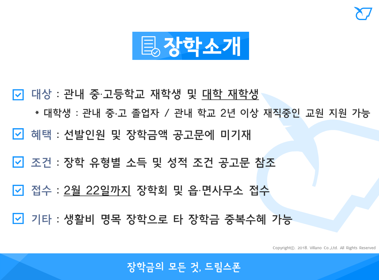 - 선발인원 및 장학금액 공고문에 미기재 (이사회에서 결정)