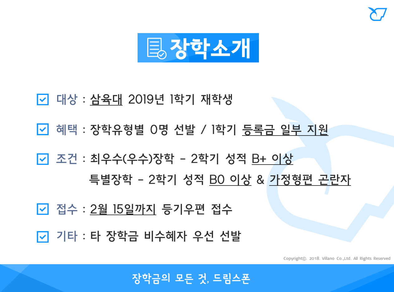 - 최우수(우수)장학 0명, 특별장학 0명 선발