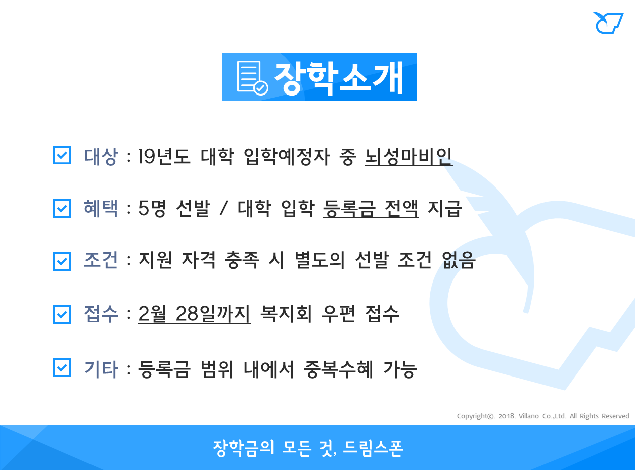 - 장학금액 : 대학입학 등록금 전액 지급