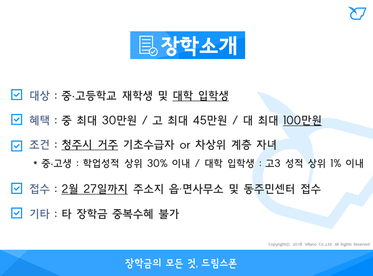 청주시 저소득주민자녀 장학