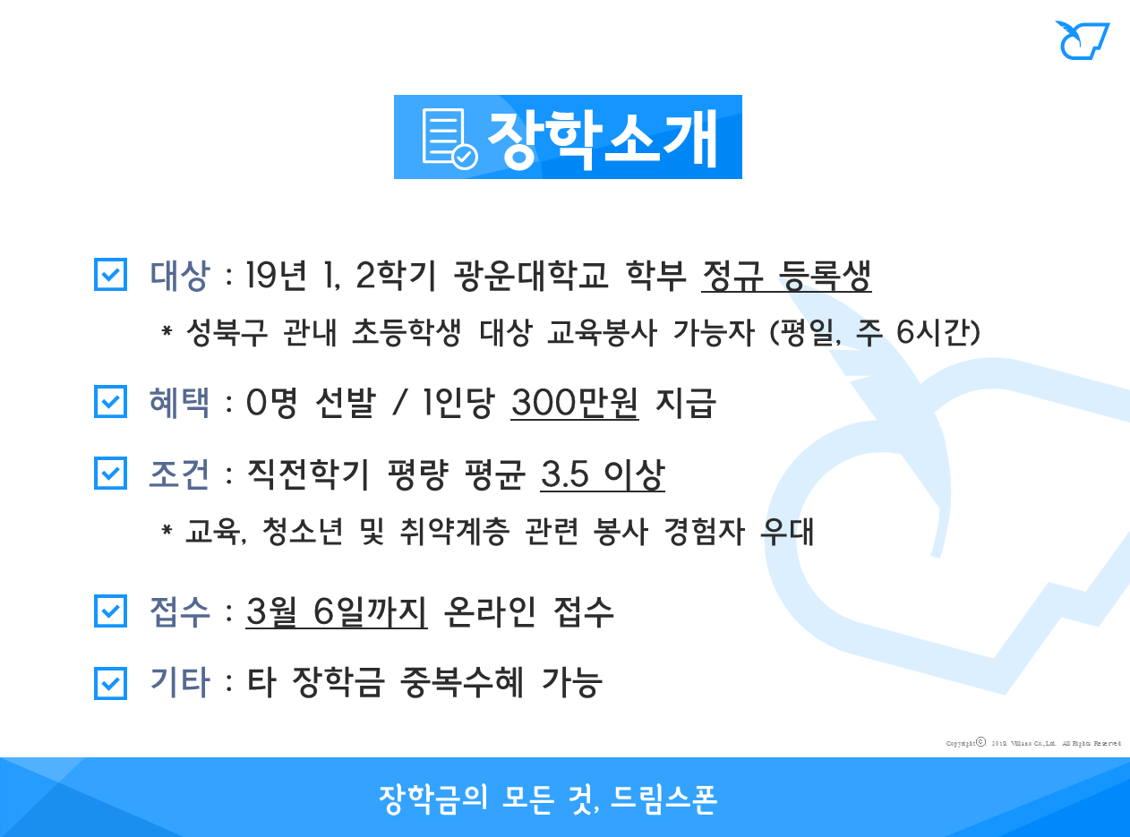 - 장학금액 : 1인당 300만원 지급