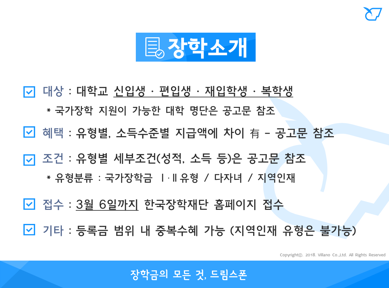 - 국가장학금 Ⅰ유형 : 소득구간별 차등 지원(학기당 최대 260만원 지급)