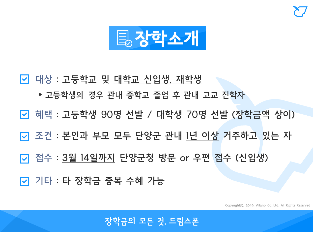 단양장학회 장학 (2019년)