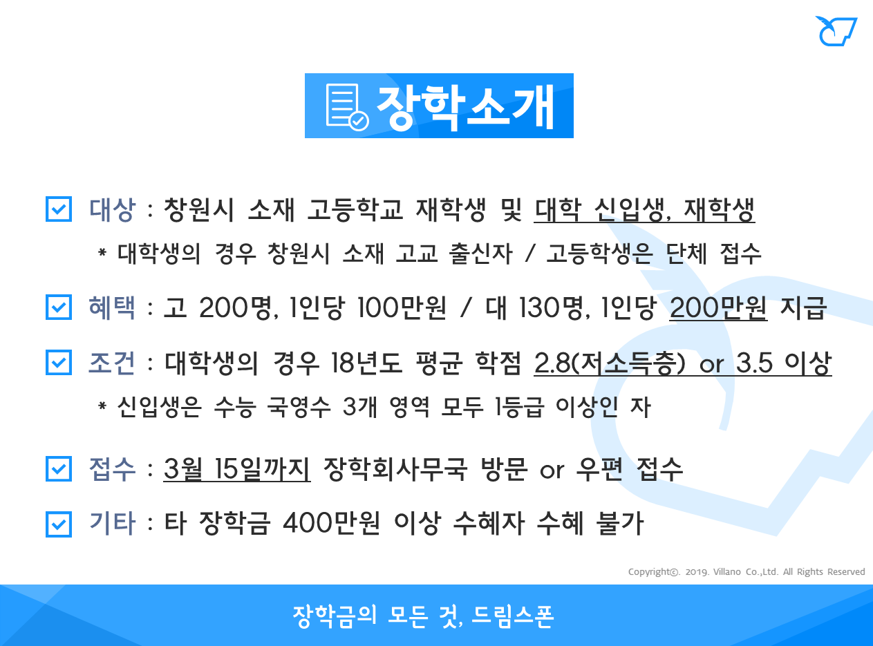 창원시장학회 장학 (2019년)