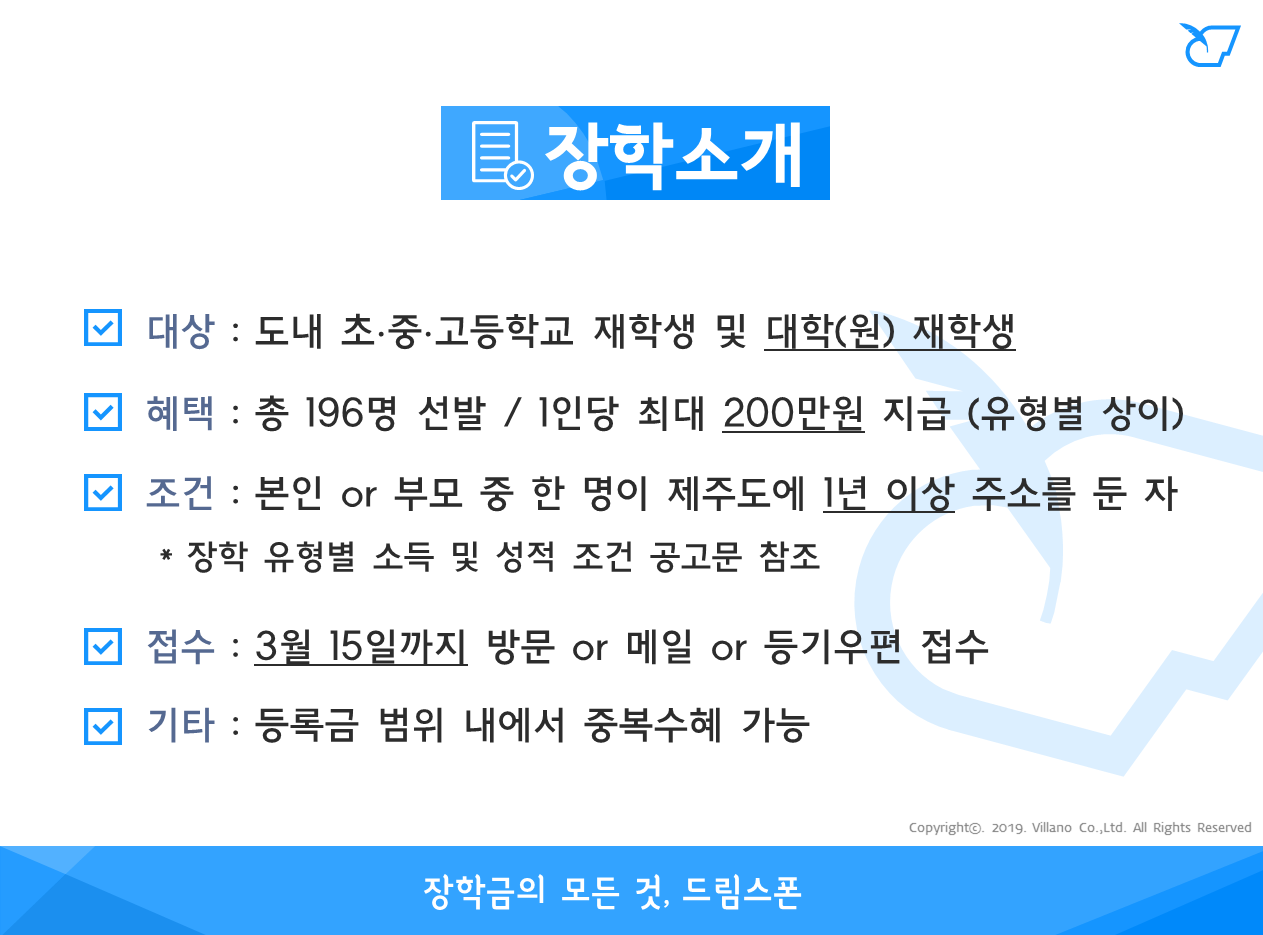제주 인재육성 장학 (2019년)