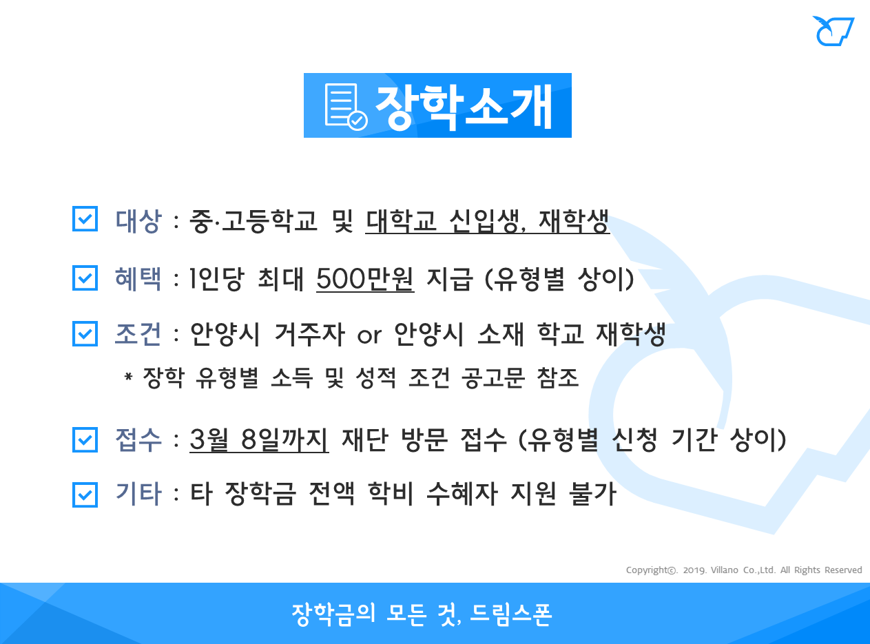 - 03. 06. (수) ~ 03. 07. (목) : 성취장학, 지정(부자나무) 장학