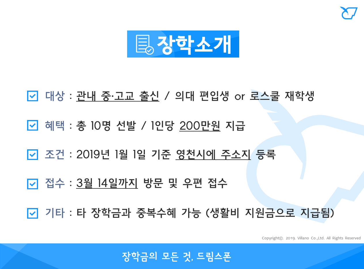 영천시 의대편입·로스쿨 장학 (2019년)