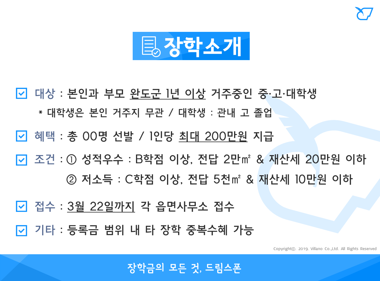 완도군 지역인재 육성 장학 (2019년 상반기)
