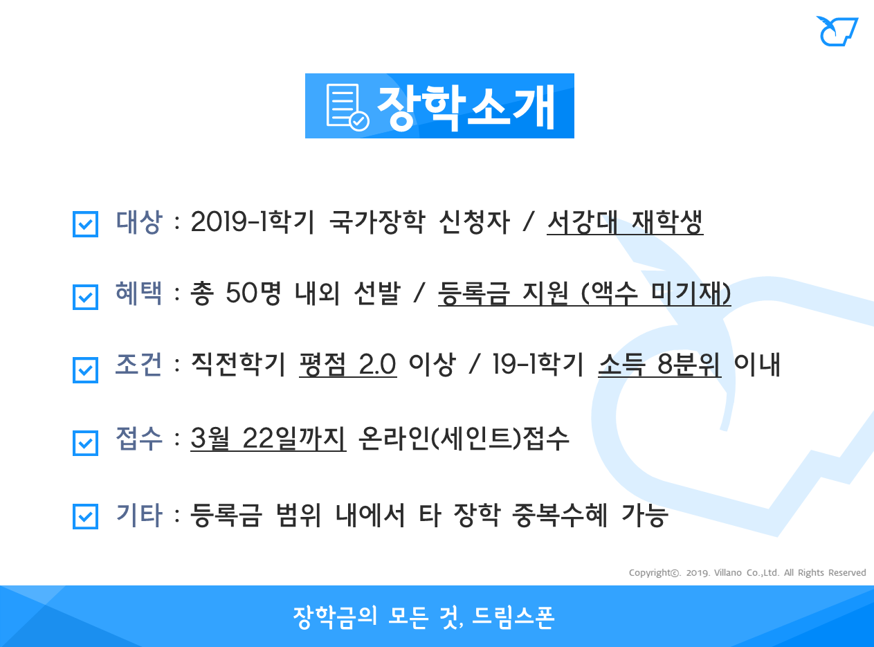 서강대 발전기금 장학 (2019년 1학기)