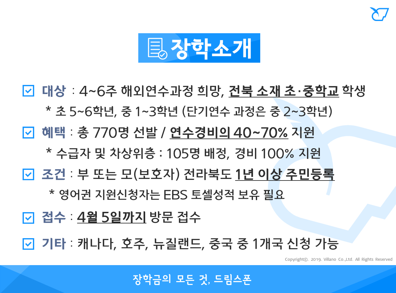 전라북도 초·중 글로벌체험 해외연수 장학 (2019년)