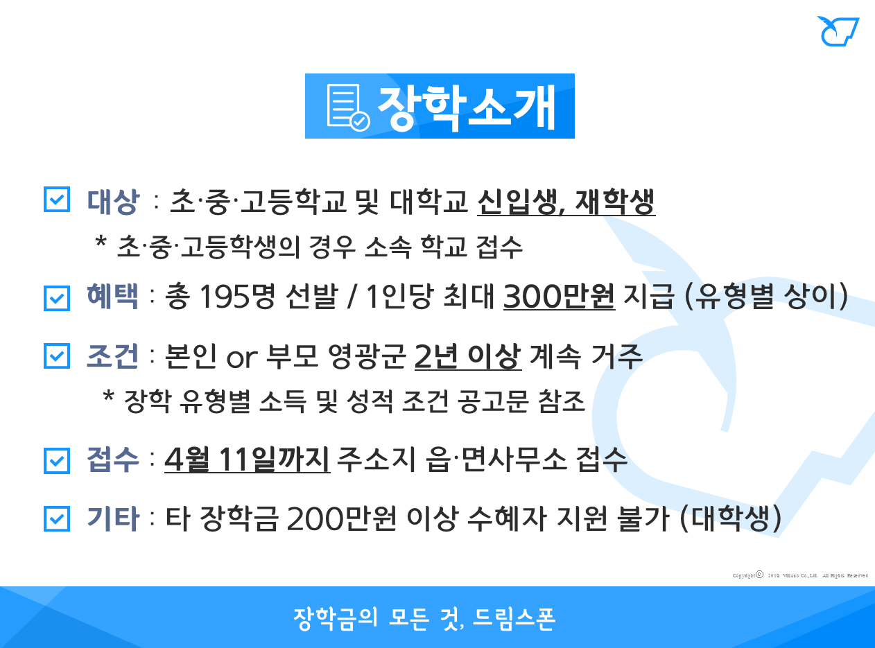 - 초등학생 : 23명 선발, 1인당 20만원 지급