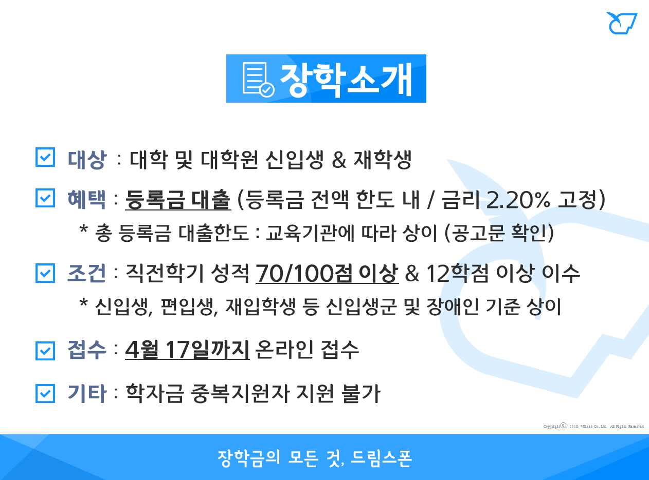 - 등록금 : 대학에서 고지한 수납금액을 대출신청금액으로 확정하여 대학 수납계좌로 지급