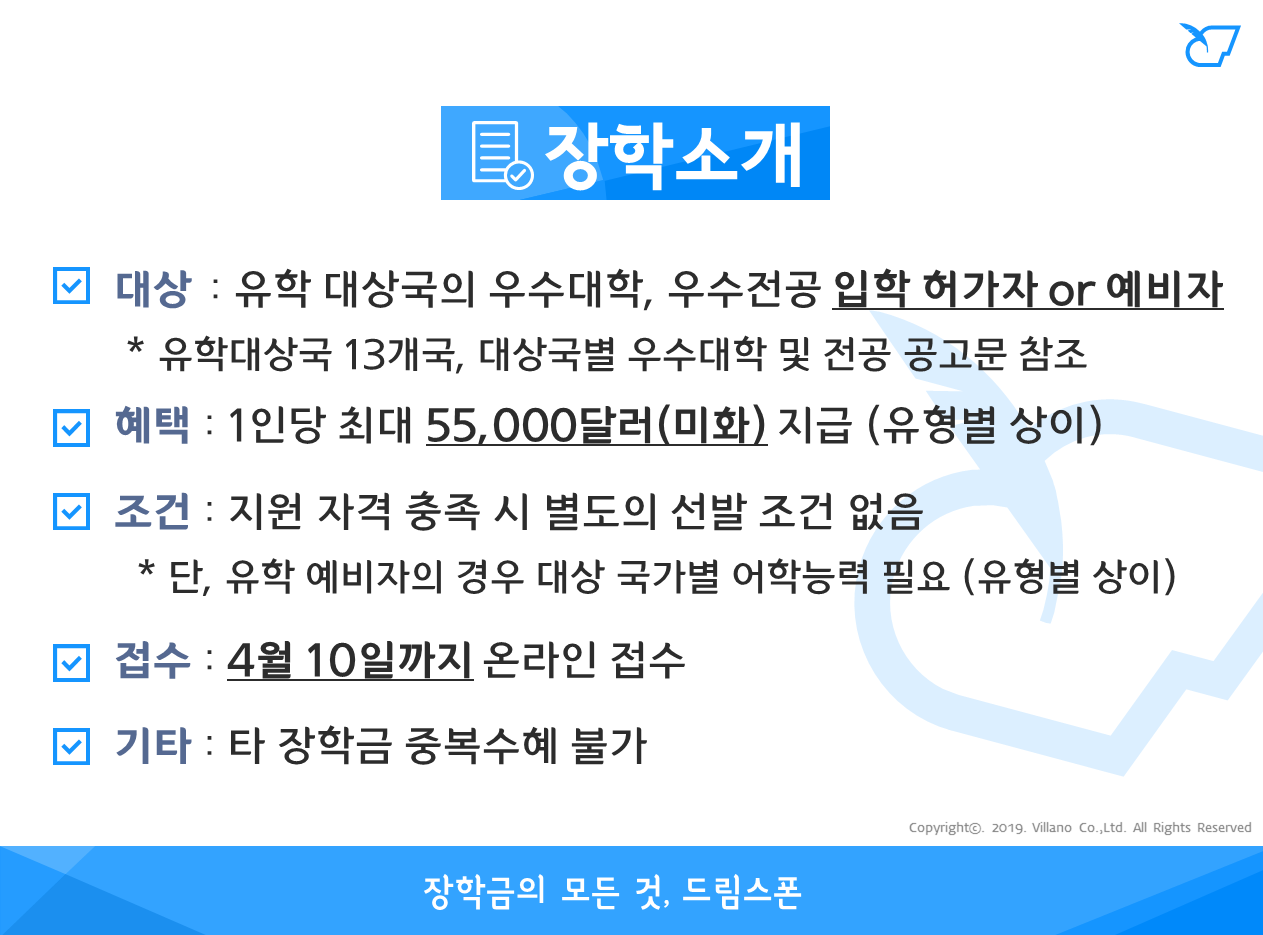 - 미국(학부) : 1인당 최대 55,000미화달러 지급