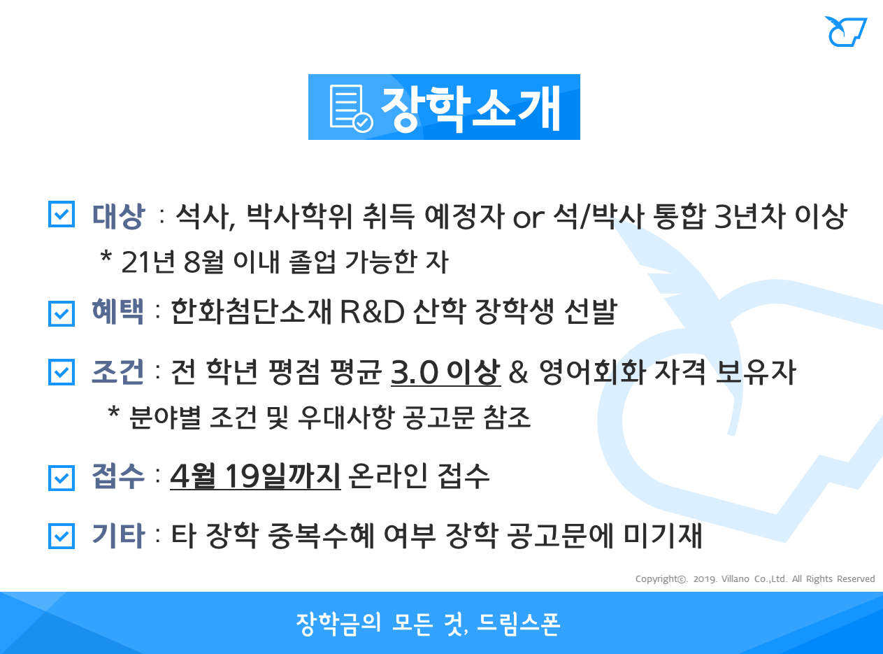 - 한화첨단소재 R&D 산학장학생으로 선발