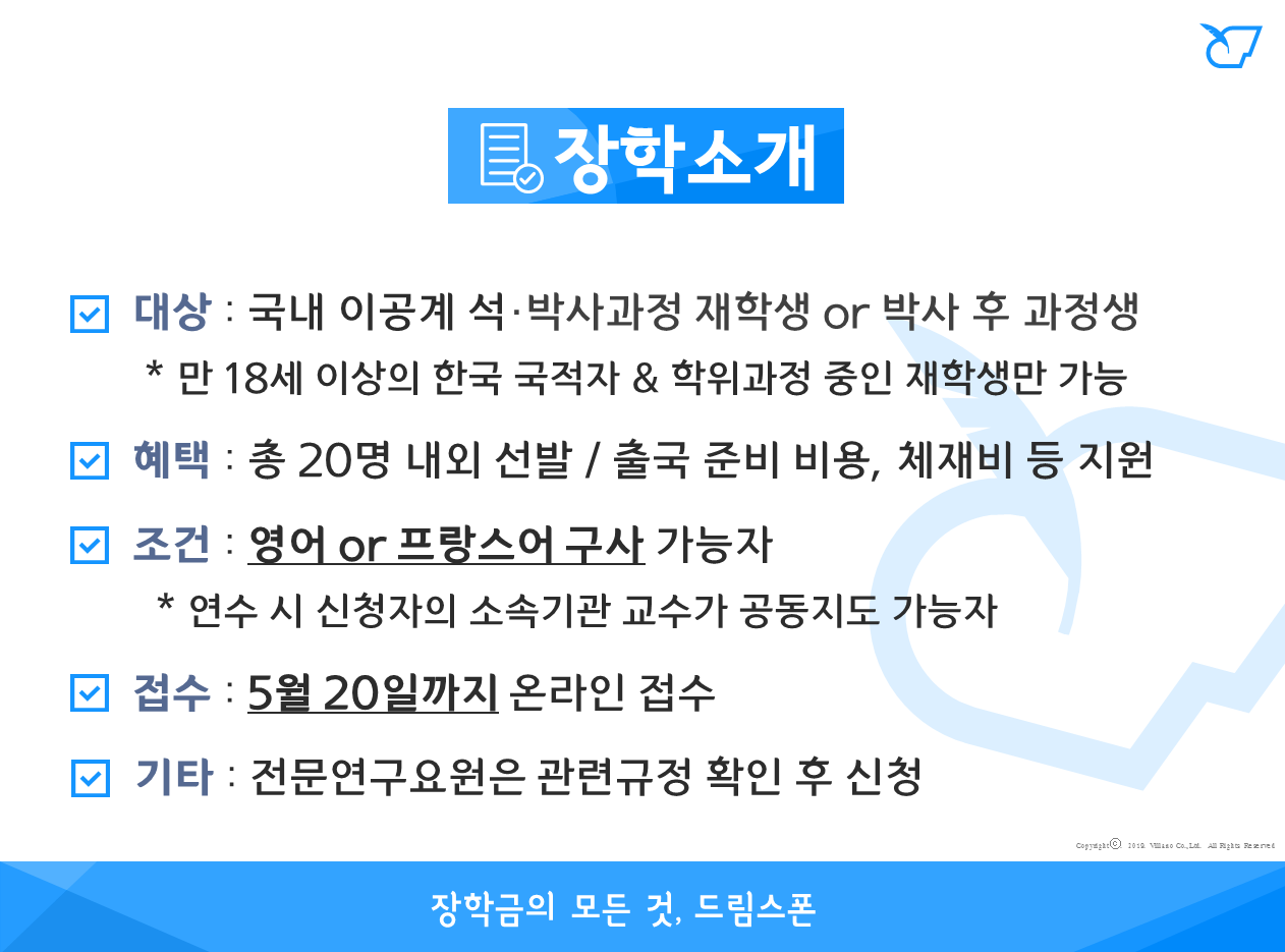 - 총 20명 내외 / 출국 준비비용, 체재비등 지원