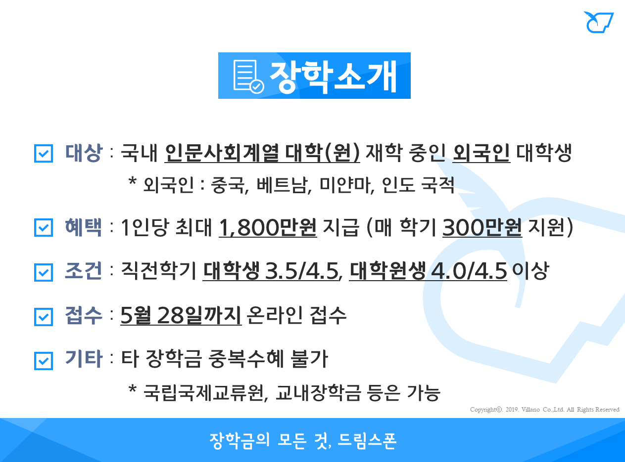 * 매학기 300만원 지원, 졸업까지 연 단위 심사