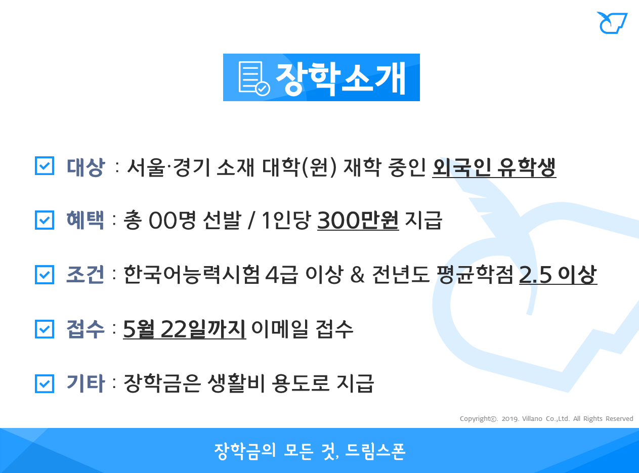 - 장학금액 : 1인당 300만원 지급 (1, 2학기 분할 지급)