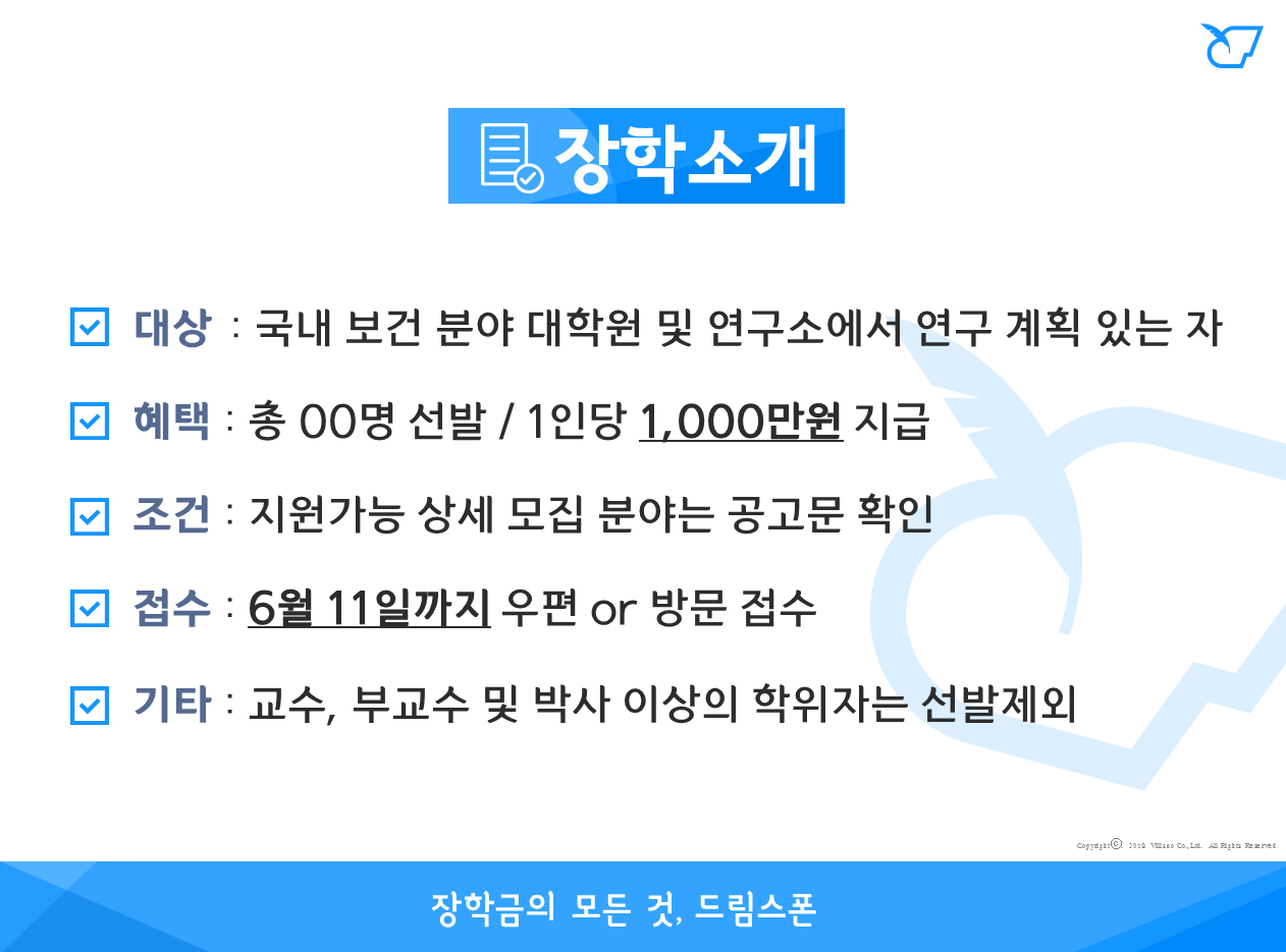 유한재단 보건학술연구 장학 (2019년)