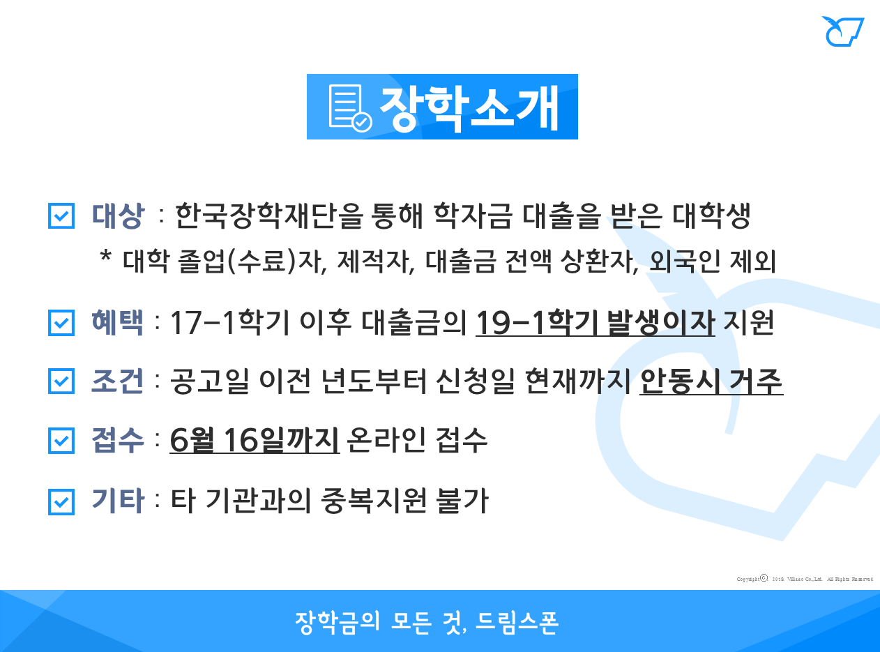 - 한국장학재단을 통해 17-1학기 이후 대출받은 학자금의 19-1학기 발생이자 지원