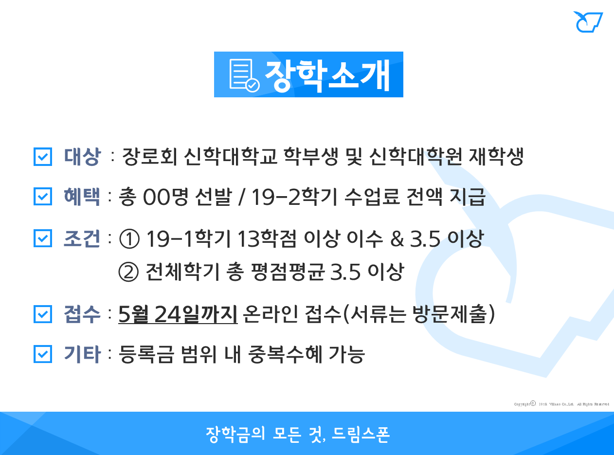 - 총 00명 선발 / 19-2학기 수업료 전액 지원