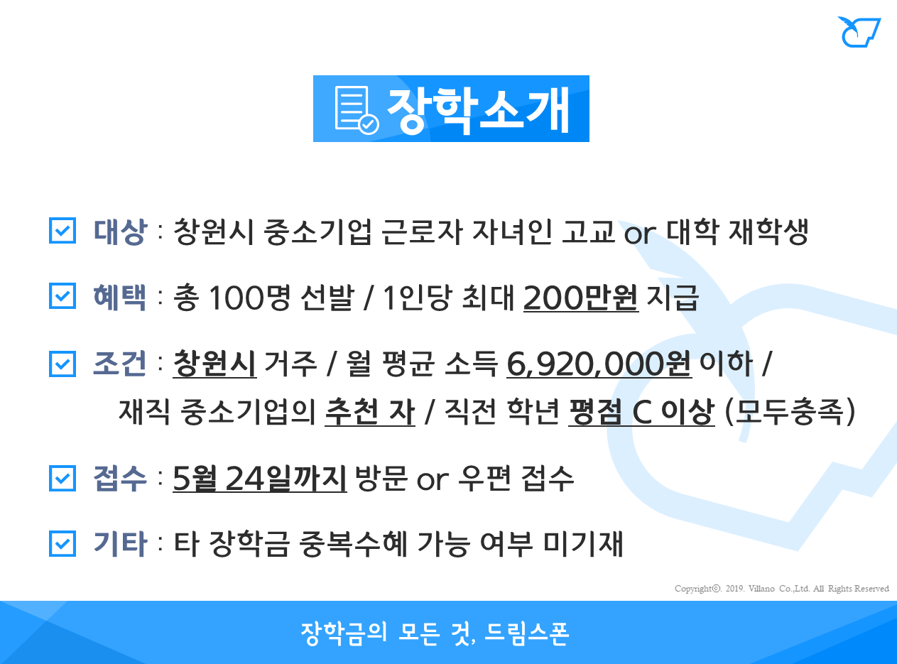 창원시 중소기업 근로자자녀 장학 (2019년)