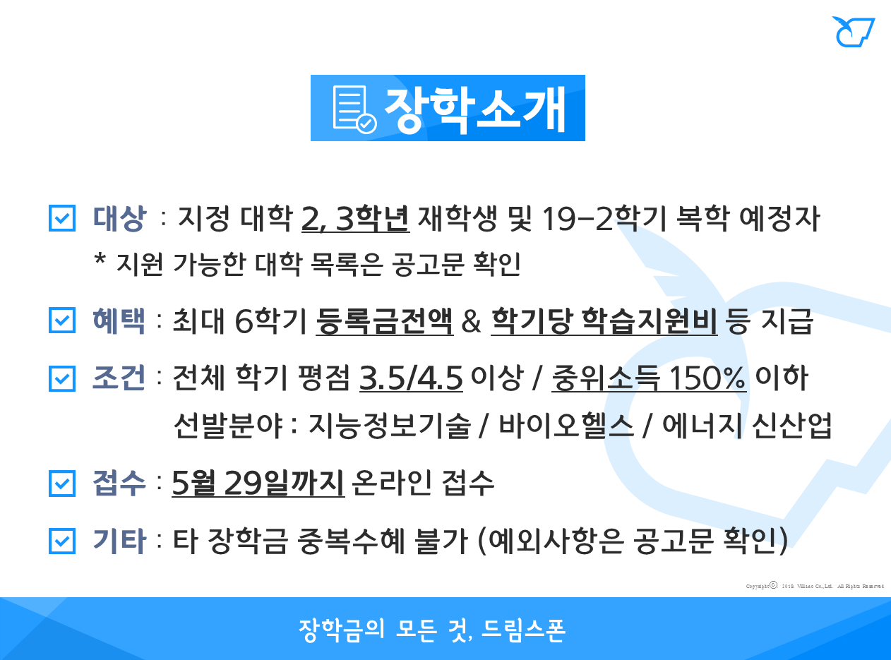 - 최대 6학기 등록금 전액 & 학기 당 학습지원비 180만원 등 지원 (공고문 확인)