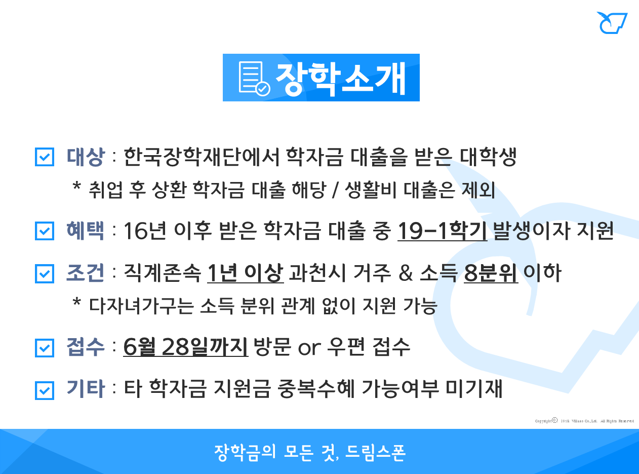 - 2016년 이후 받은 학자금 대출 중 2019년 상반기 발생이자 지원