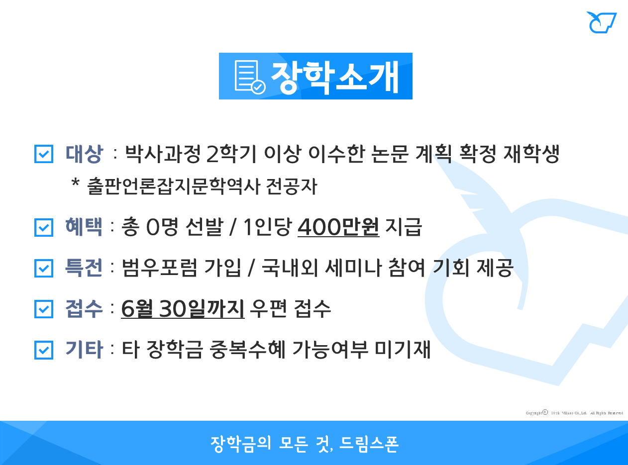 - 장학혜택 : 1인당 400만원 지급