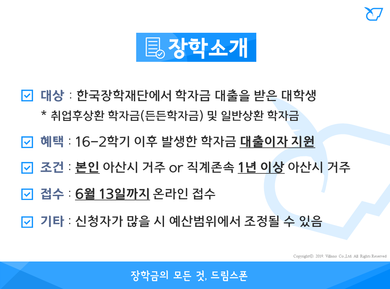 아산시 학자금대출 이자지원 (2019년 1학기)