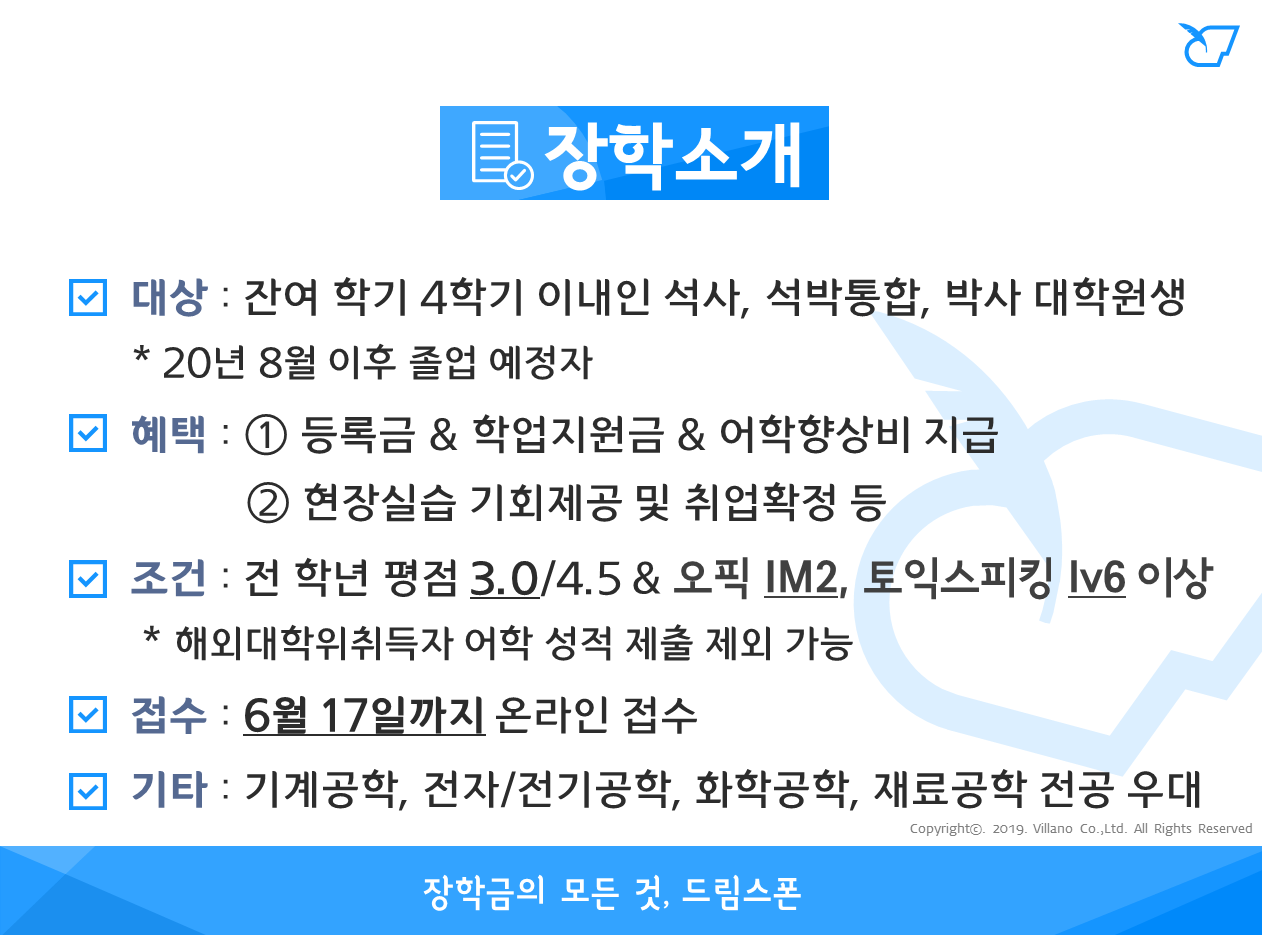- 등록금, 학업지원금, 어학향상비 지원