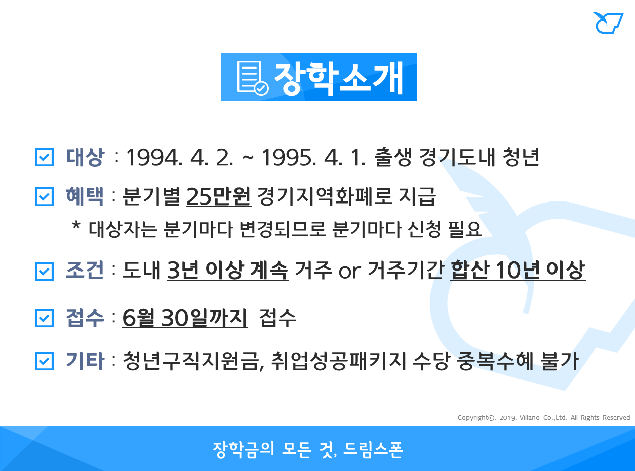 - 분기별 25만원 경기지역화폐 전자카드 or 모바일 형태로 지급