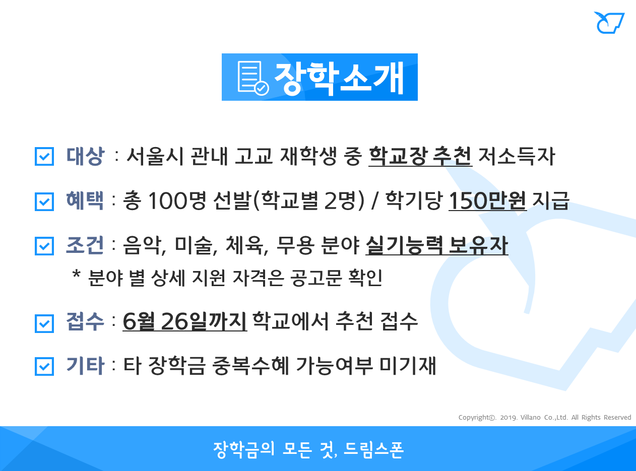 서울희망 예체능장학 (2019년)