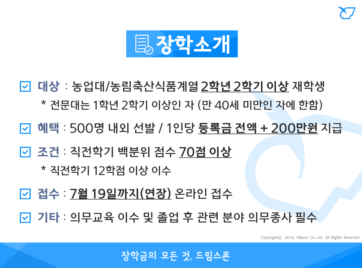 청년창업농 육성 장학 (2019년)