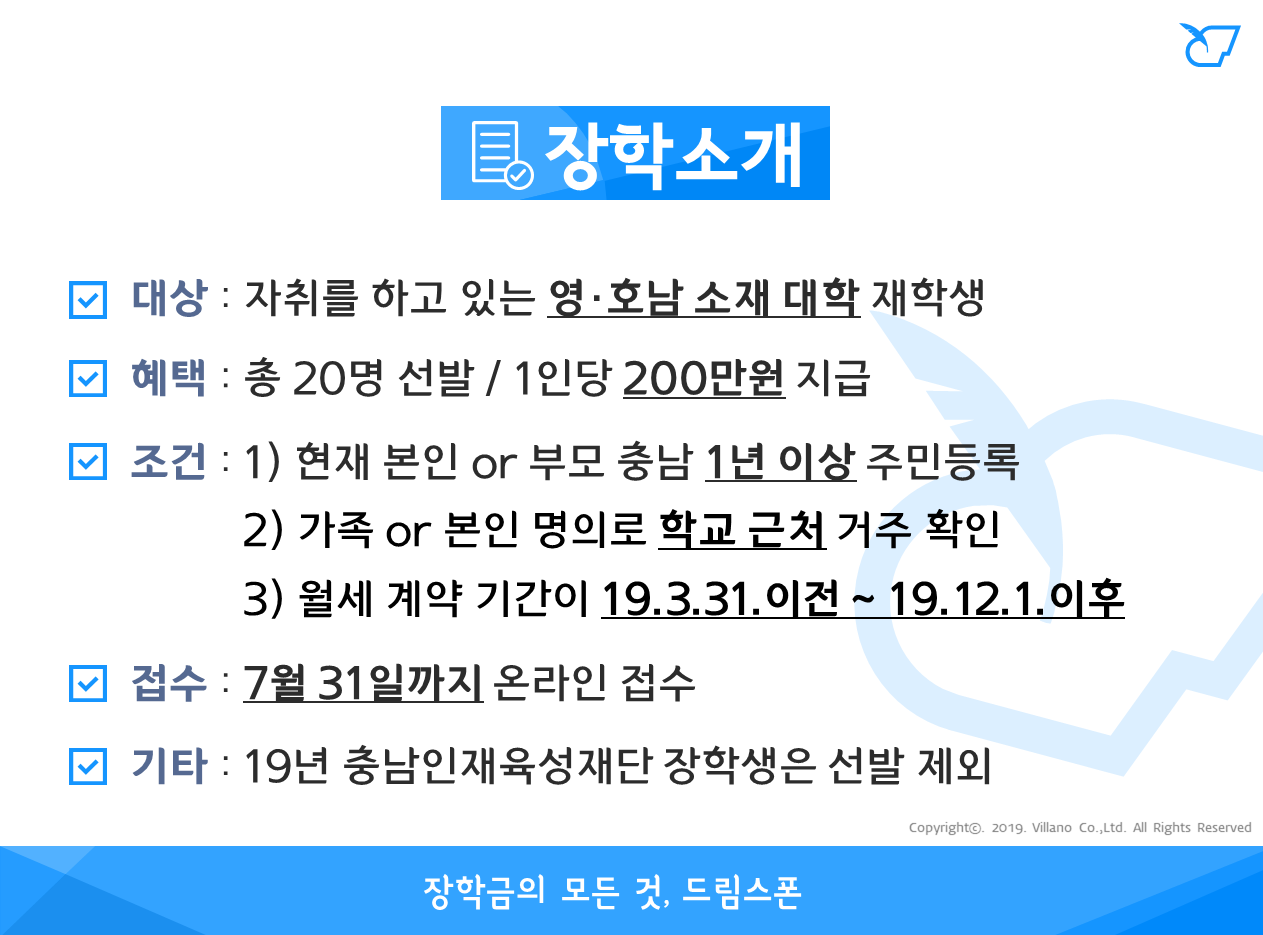 충남인재육성재단 거주비지원 장학