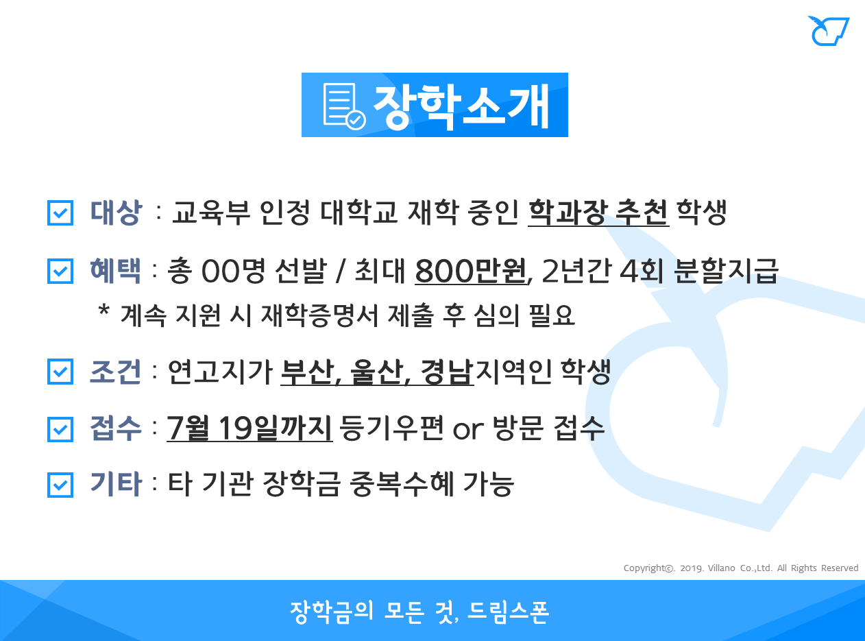 - 총 00명 선발 / 1인당 800만원 지급(2년간 분할지급)