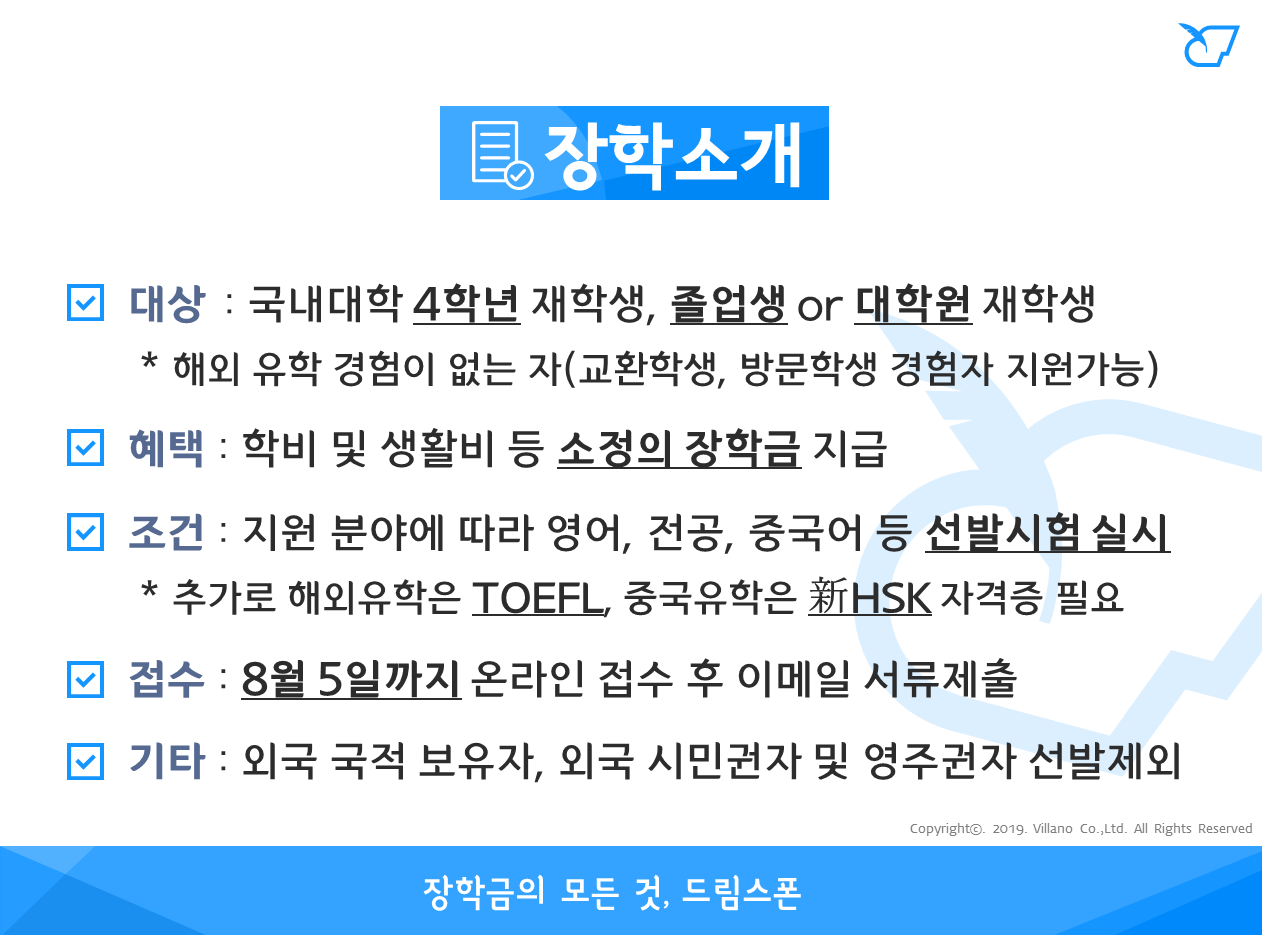 - 선발인원 미기재 / 학비 및 생활비 등 소정의 장학금 지급