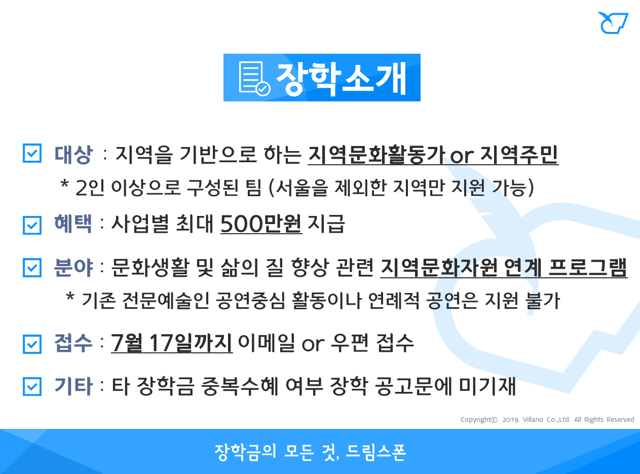 - 장학금액 : 사업별 최소 100만원 ~ 최대 500만원