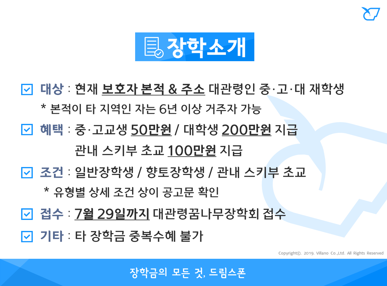 대관령꿈나무장학회 장학 (2019년 하반기)