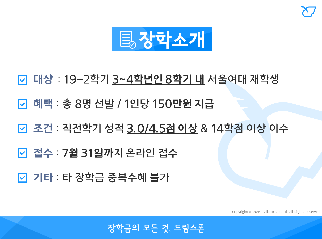서울여대 목훈장학 (2019년 2학기)