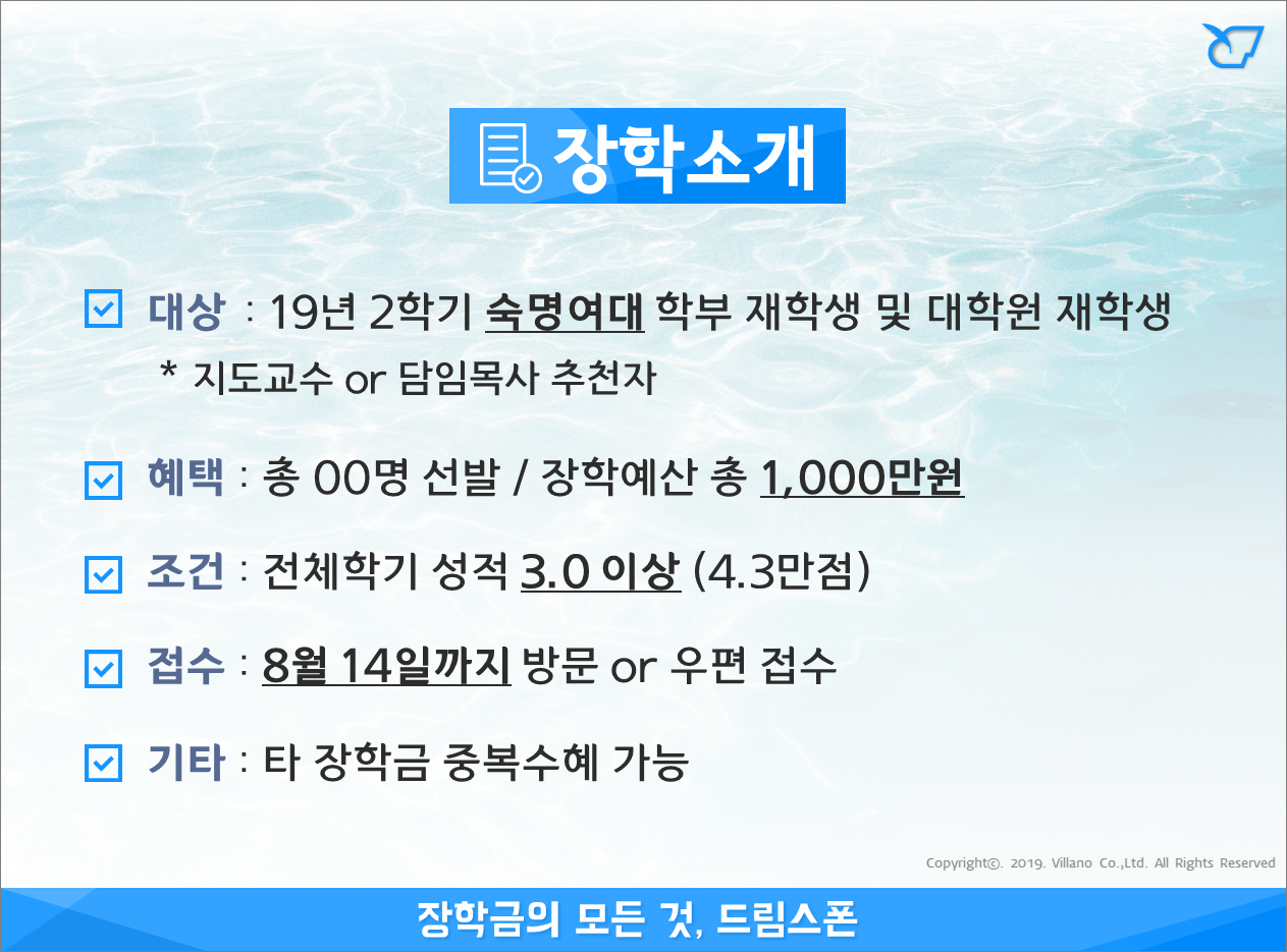숙명여대 솔트-팬 장학 (2019년 2학기)
