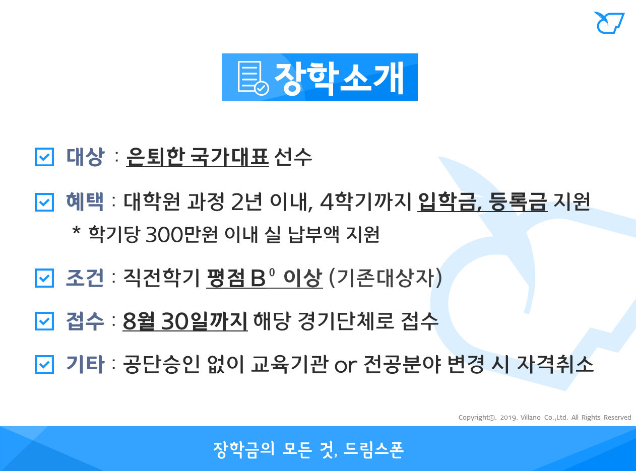 은퇴 국가대표 대학원진학 장학 (2019년)