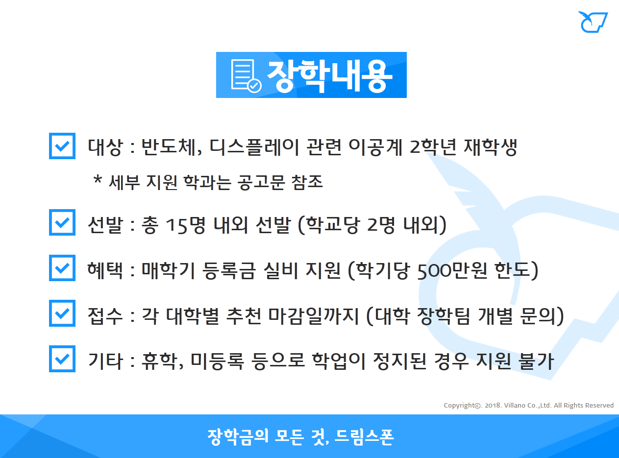 - 매학기 등록금 실비 지원 (학기당 500만원 한도)