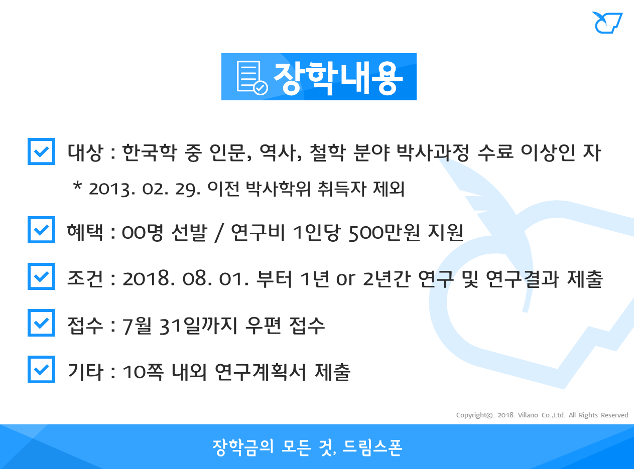 한국학 중 특히 '인문', '역사', '철학' 분야로 한정하여 지원한다.