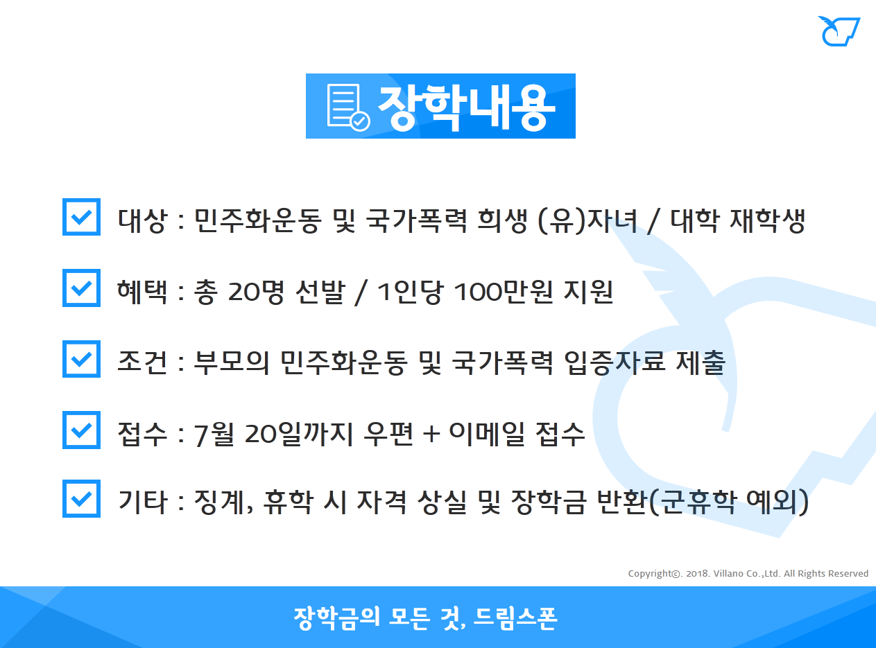 ○ 대상 : 대학 재학 중인 민주화운동 및 국가폭력 희생 (유)자녀
