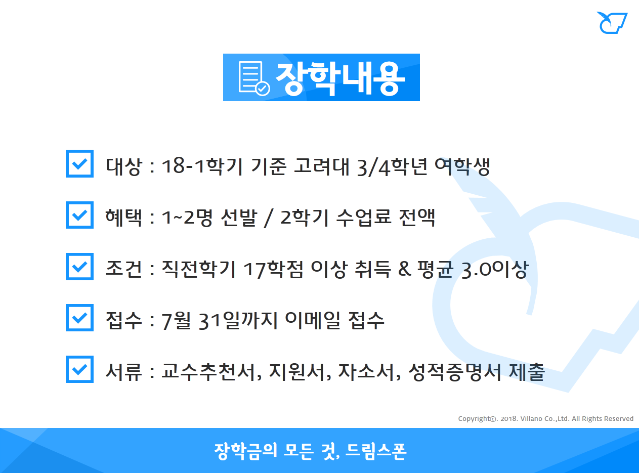 고려대 여교수회 차세대지도자장학(2학기)