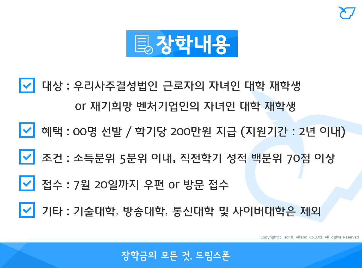 * 지원기간 : 2년 이내 (졸업시까지), 매학기 자격 유지 심사